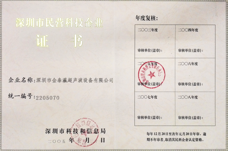 金泰瀛-民營科技企業證書